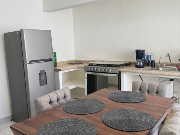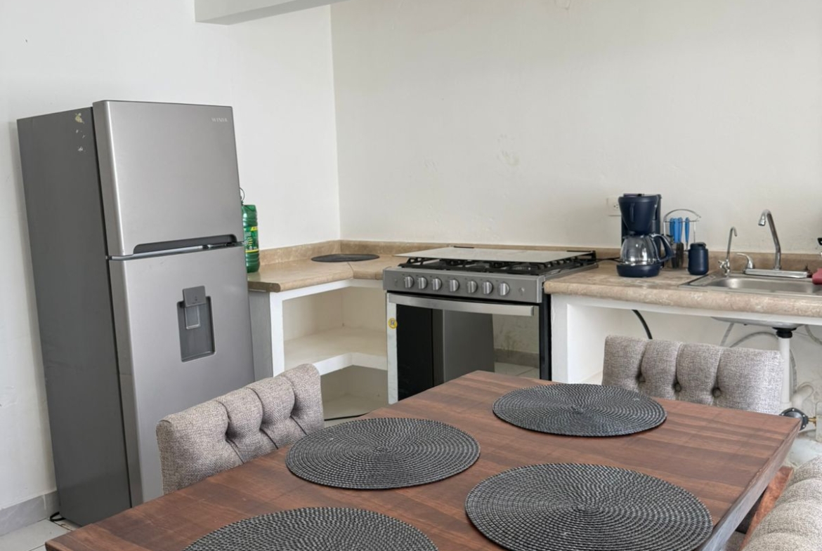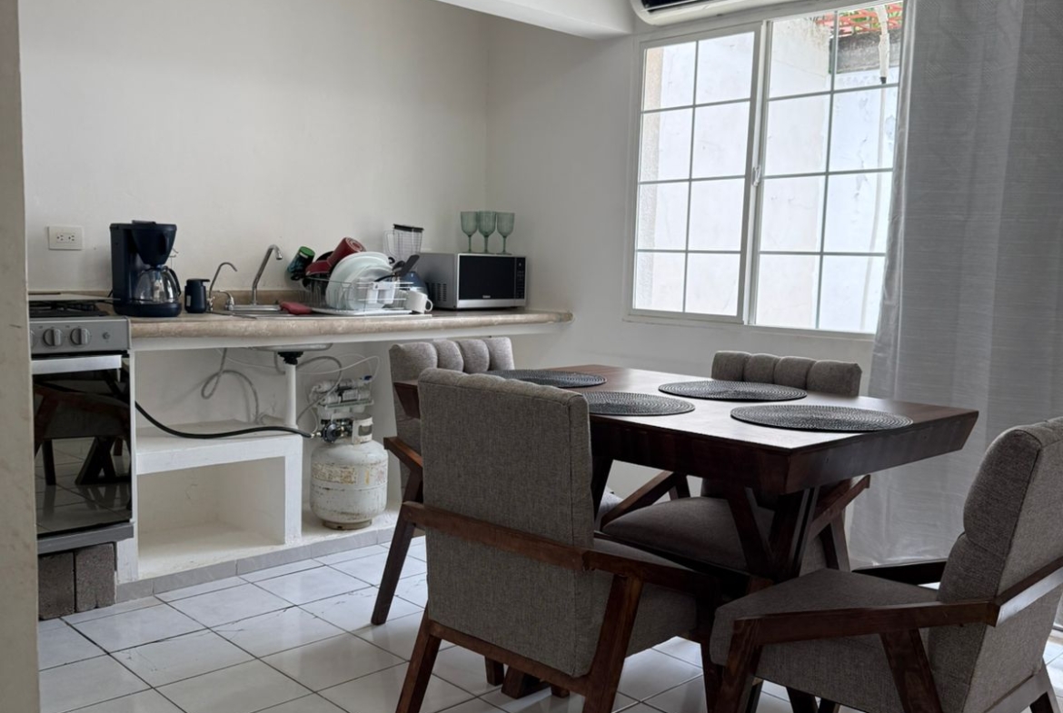 •Cocina equipada: estufa, refrigerador, microondas, licuadora y comedor