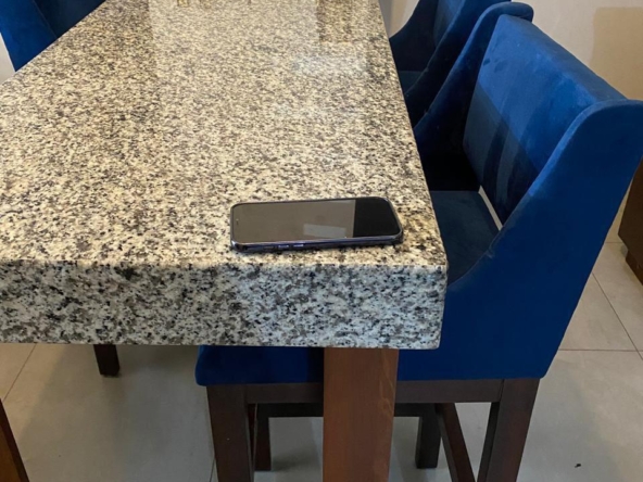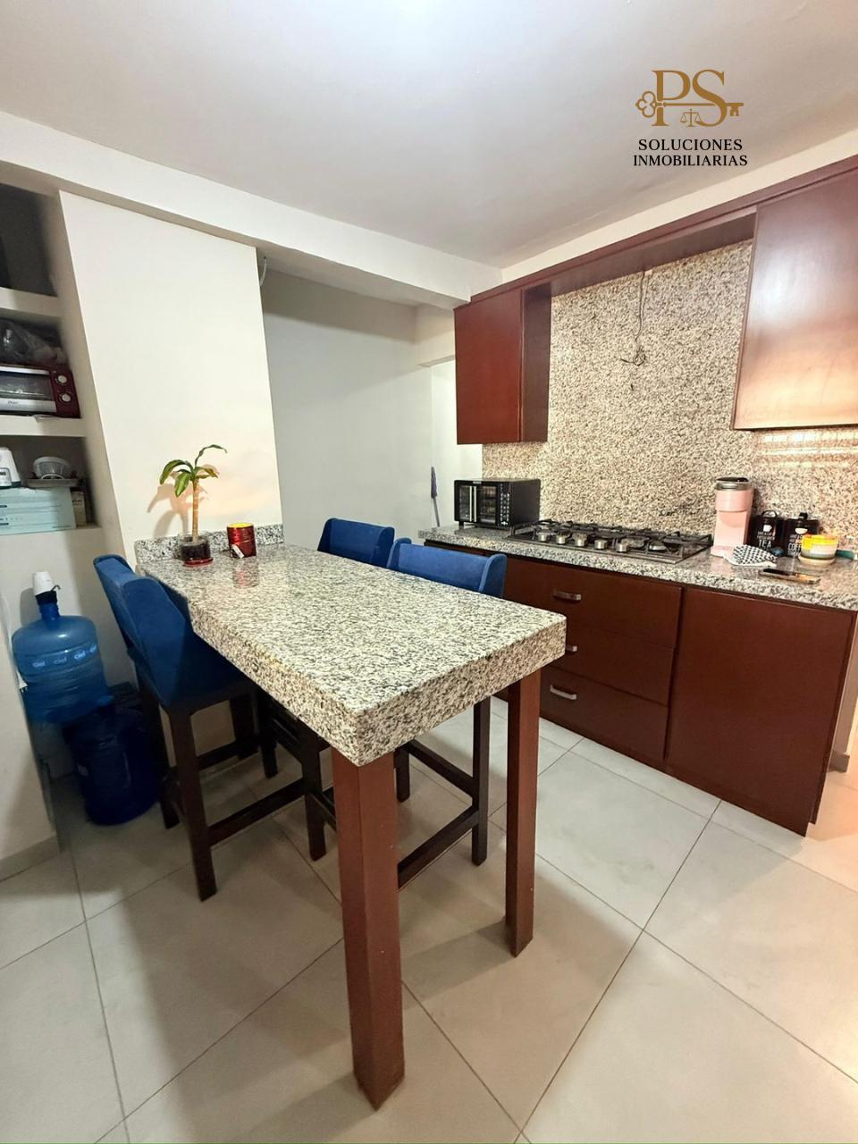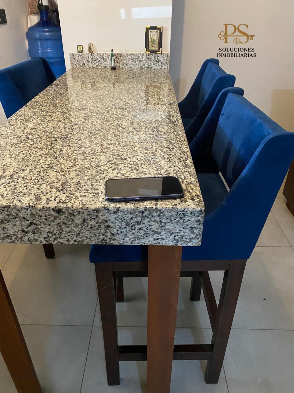 🔹 Cocina integral con barra de granito, isla, parrilla y campana